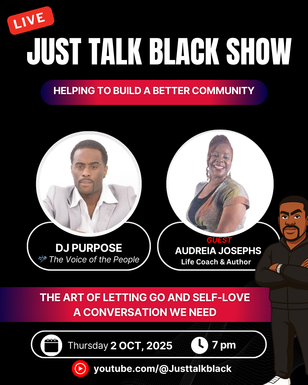 Every week, the Just Talk Black Show brings you powerful conversations that highlight Black voices, culture, and stories that matter. Don’t miss our next episode — tune in live, call in, and be part of the discussion.